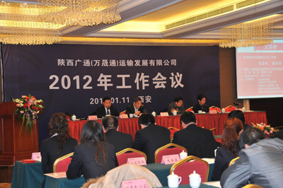 2012年1月11日,陜西廣通運輸發(fā)展有限公司、陜西萬晟通實業(yè)有限公司2012年工作會議在西安悅豪酒店隆重召開。陜煤運銷集團公司總經(jīng)理助理、運輸中心主任譚志軍,陜煤炭運銷集團公司財務(wù)部經(jīng)理、廣通公司財務(wù)總監(jiān)和學(xué)謙,廣通公司董事長、萬晟通公司董事長任曉鵬,廣通公司總經(jīng)理、萬晟通公司董事長助理沈來萬,萬晟通公司總經(jīng)理孟立新,陜煤炭運銷集團公司運輸中心王江,以及廣通和萬晟通公司的員工代表共九十多人參加了此次會議。會議由廣通公司常務(wù)副總經(jīng)理張益銘主持。
