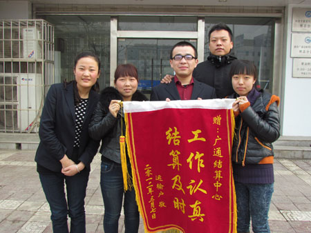 送來錦旗的運輸戶姓焦,2月底的一天,因為自己的疏忽不慎將一份結(jié)算票據(jù)遺失。其實他早已認(rèn)定丟失的票據(jù)已被他人結(jié)算兌現(xiàn)。不過,令他意外的是3月2日,當(dāng)他到彬縣分公司結(jié)算中心結(jié)算運費時,結(jié)算員郭寶銳將丟失的結(jié)算票據(jù)交還給了他。拿著失而復(fù)得的票據(jù),焦師傅驚喜萬分。3月9日,焦師傅帶著錦旗與感謝信來到了彬縣結(jié)算中心。